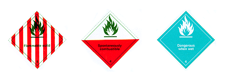 Класс 4. Легковоспламеняющиеся вещества и материалы (кроме классифицированных как взрывчатые), способные во время перевозки легко загораться от внешних источников воспламенения, в результате трения, поглощения влаги, самопроизвольных химических превращений, а также при нагревании.